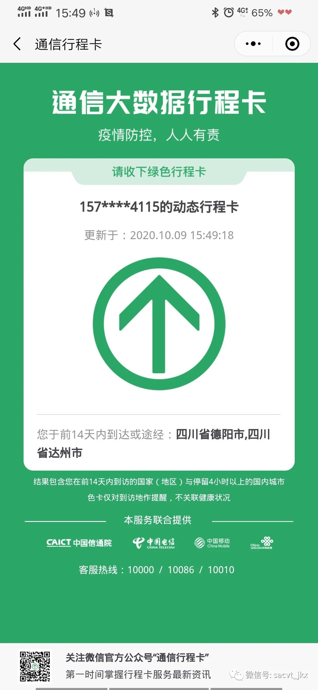 5、现场需查验“健康码”(微信或支付宝绑定小程序)和“防疫行程卡”(微信小程序国务院客户端)