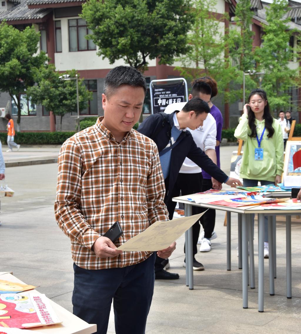 在第六个中国航天纪念日到来之际,为普及航天科技知识,弘扬航天精神与航天文化,计算机科学系积极响应学校号召,于2021年4月23日在图书馆门口举办了纪念钱学森诞辰110周年暨第六个“中国航天日”主题作品展。学院党委办公室主任马芸、学工部部长刘晓芳、计算机科学系主任高秀东,副主任高人彬作为嘉宾出席了此次活动。