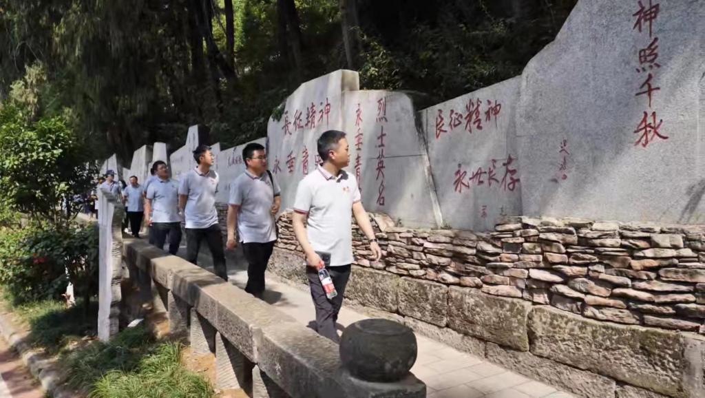 14日上午,全体人员前往广元苍溪红军渡,瞻仰红四方面军强渡嘉陵江战役遗址。在园区讲解员的带领下,全体人员在强渡嘉陵江战役纪念碑默哀悼念,缅怀先烈们在战役中的英勇事迹。拾阶而上,印入眼帘的是功勋馆,一个个英雄的名字向我们诉说着英烈们的满腔热血和赤诚,在展览馆中,讲解员声情并茂地介绍了红四方面军强渡嘉陵江的历史背景和相关文物,馆内的投影系统生动还原了红四方面军强渡嘉陵江的真实场景,令大家感同身受,仿若置身其中。巍巍塔子山,悠悠嘉陵江。走遍红军渡里的每一个角落,大家无不被革命先烈们无私无畏的崇高精神所感动,先烈们用他们的满腔热血以及对国家和民族深沉而博大的爱,走完了一处又一处长征路,抒写了一个又一个感人至深的英雄故事。
