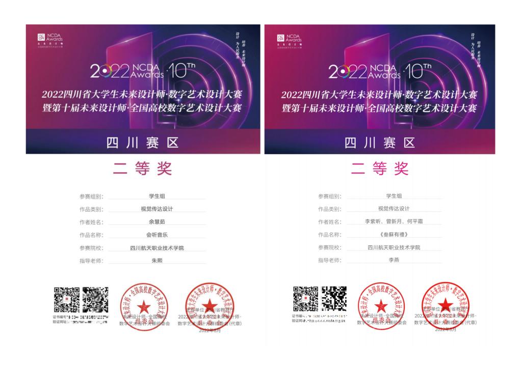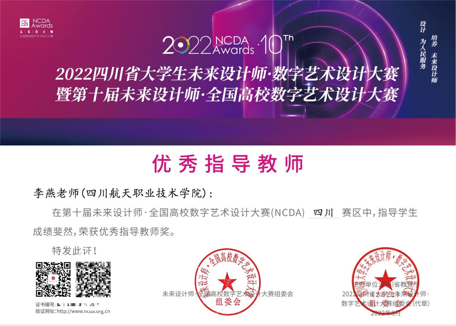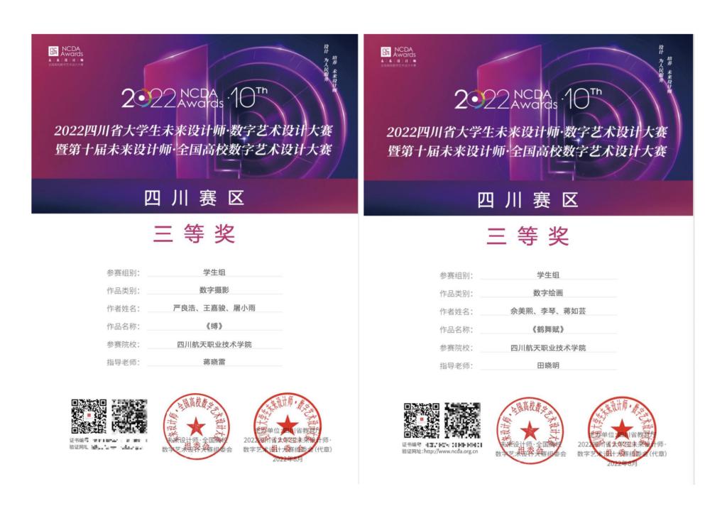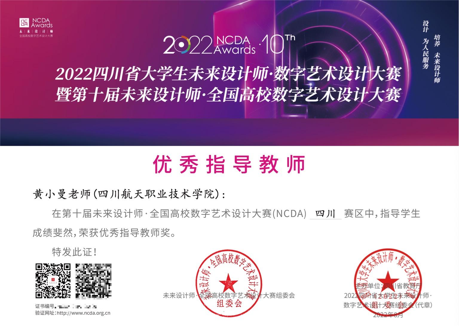 在四川省教育厅主办的2022四川省大学生未来设计师·数字艺术设计大赛暨第十届未来设计师·全国高校数字艺术设计大赛中,计算机科学系李燕、黄小曼、田晓明老师荣获优秀指导教师奖,并且指导参赛同学们获得一等奖2项,二等奖4项,三等奖4项。