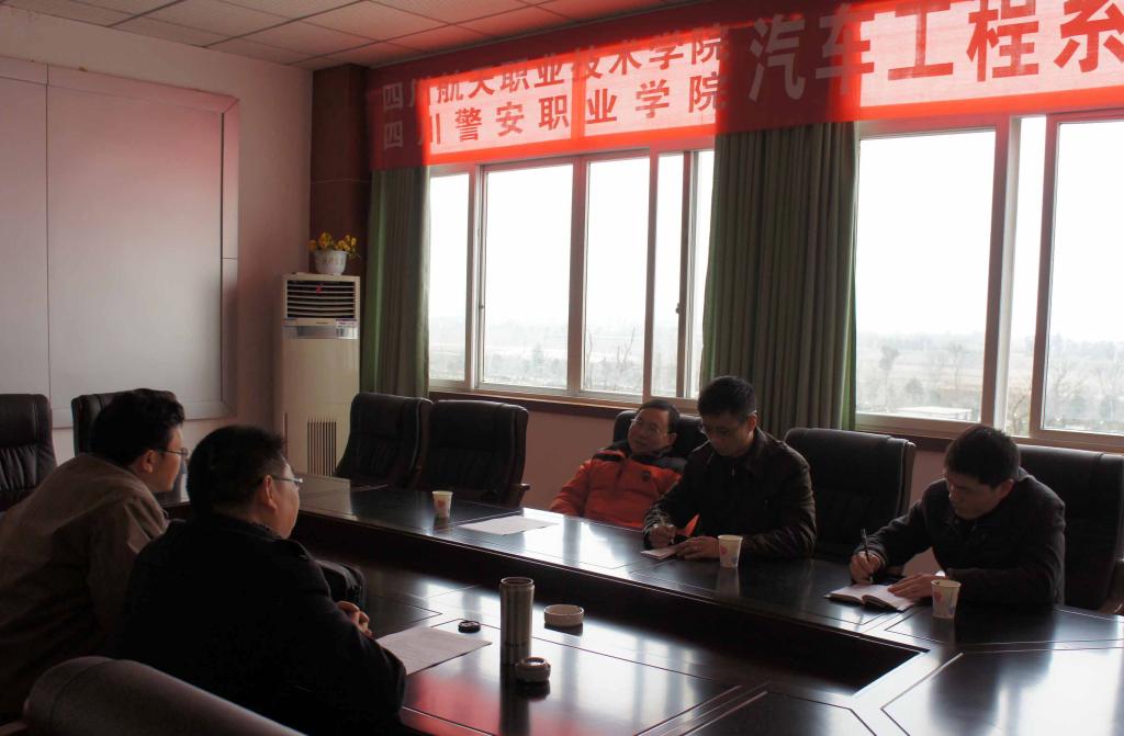 3月6日,四川警安职业学院汽车系主任廖洪清一行3人到我系进行示范建设交流活动。 B3 q5 x& ?* z* Z' J 根据十大网投平台排名和四川警安职业学院双方协议,双方在专业建设、师资队伍建设、人才培养模式等方面进行交流。双方主要就汽车专业实践教学、校企合作、就业的经验,运作机制等进行了详细交流。: c% w* g6 K( |( k% ]) N- U 交流会后,来访客人还兴致勃勃地参观了广汉校区及实习工厂。