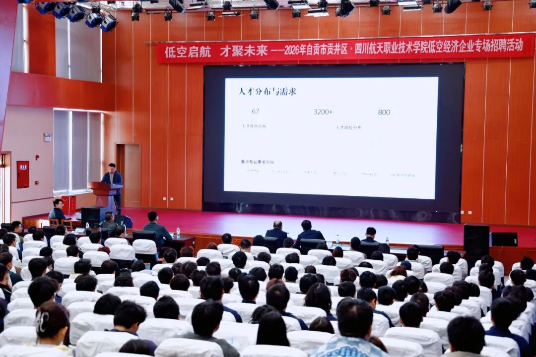 活动现场,自贡市贡井区人力资源和社会保障局相关负责人就当地就业创业政策进行了详细解读,并对自贡航空产业园区的发展规划、产业布局及人才引进政策作了系统介绍。随后,天信空天探索(自贡)科技有限公司、天信智造(自贡)科技有限公司、四川腾盾科技有限公司、自贡通航国际飞机制造有限公司、四川蜜蜂飞机制造有限公司、四川空途通信有限公司等企业依次开展宣讲,围绕企业发展概况、岗位需求、职业发展路径等方面进行了全面推介。