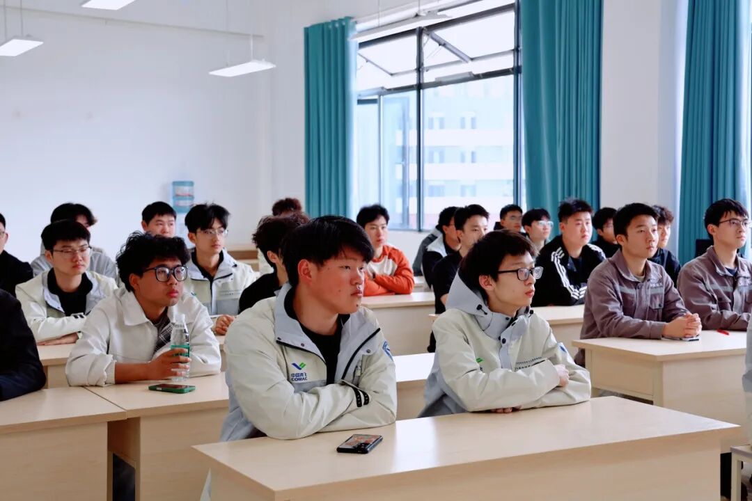 在互动提问环节,现场学生围绕专业学习、职业规划、技能提升、求职准备等方面踊跃提问。魏正道结合自身经历一一作答,语言朴实、见解深刻,赢得了阵阵掌声。他鼓励同学们要树立远大理想,同时注重日常积累,做到“眼中有光、手中有技、心中有责”,在服务国家重大战略需求中实现人生价值。