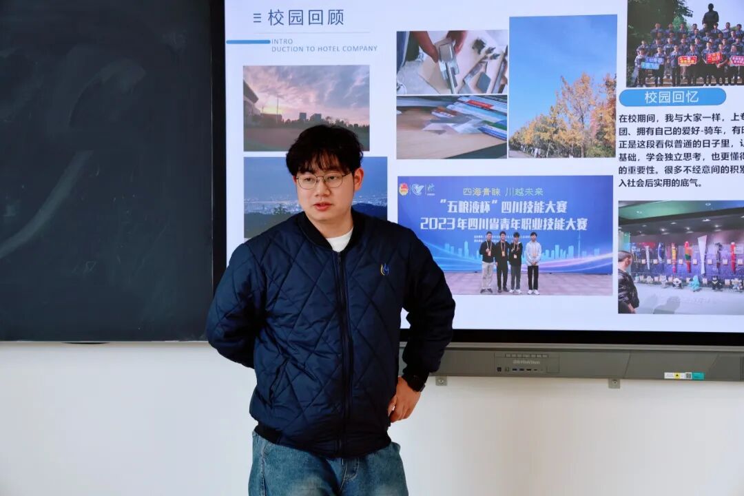 分享会上,魏正道深情回顾了在校期间的学习经历与成长点滴。他表示,“钱学森英才班”浓厚的学术氛围、严谨的育人理念以及老师们精益求精的指导,为他打下了坚实的专业基础和职业素养。他从“目标确立”“技能锤炼”“心态调适”“职场适应”四个方面,结合自身求职与工作实践,详细讲述了从校园到科研院所的心路历程。他勉励在场学弟学妹,要珍惜在校时光,沉心静气夯实专业根基,在实践中不断磨砺意志品质,以脚踏实地的行动奔赴属于自己的广阔山海。